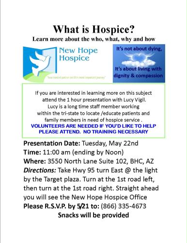 Lucy is a long time staff member working within the tri-state to locate /educate patients and family members in need of hospice service .